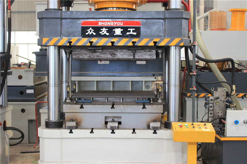 400噸壓地漏蓋板四柱油壓機_400T金屬成型油壓機是金屬拉伸成型常用的設備之一,是專為鋁、銅制品和不銹鋼、薄鐵制品行業設計制造的油壓機,特別適用于薄板拉深和不銹鋼、薄板壓制成形,機身剛性好,滑塊速度快,沖擊成形好等特點。設備鍛件精度高,能較好的控制高度公差,材料利用率及生產效率高,易于實現在自動化,對工人操作水平要求低,噪聲和振動小等優點;滕州眾友重工設計生產三梁四柱油壓機經驗豐富,比如牛羊舔鹽舔磚壓塊機、耐火磚成型油壓機、耐火材料成型壓力機、鎂碳磚成型油壓機、金屬粉末成型油壓機、鐵粉漁網墜成型油壓機等等,同時可以按照客戶的需求進行設計