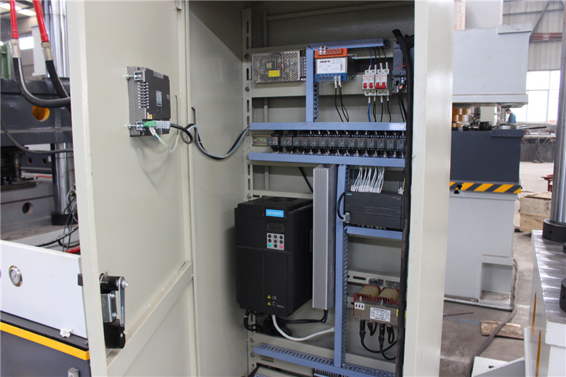 2.400噸壓地漏蓋板四柱油壓機活動橫梁二段速度控制空載高速、慢速靠模拉深; 活動橫梁上下限位保護,行程可調整;