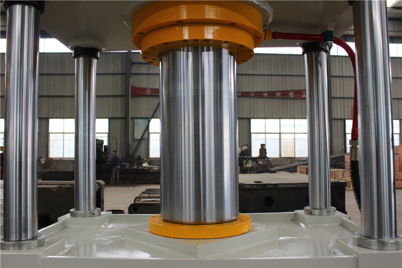 200噸四柱不銹鋼餐盤成型油壓機壓制噸位由單缸實現。活塞桿通過連接法蘭與滑塊相連接。缸體材料為優質45#鍛鋼,保證材質均勻;活塞桿表面中頻淬火處理。主缸密封件采用進口密封圈,確保密封可靠